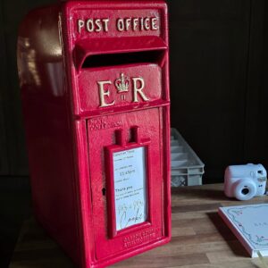 Add a traditional touch with our lockable cast iron postbox, available in red or cream. Ideal for safely collecting cards and small gifts at weddings and events.